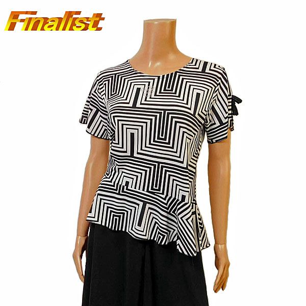 中古 社交ダンス トップス 長袖ハイネック 黒白斜めストライプ サイズF