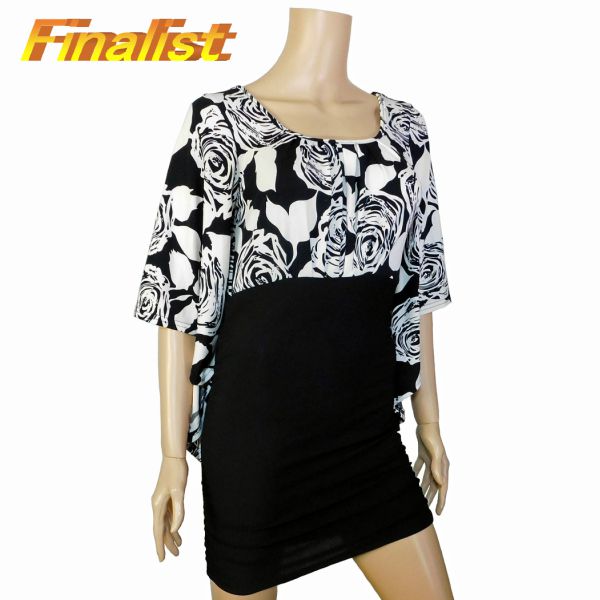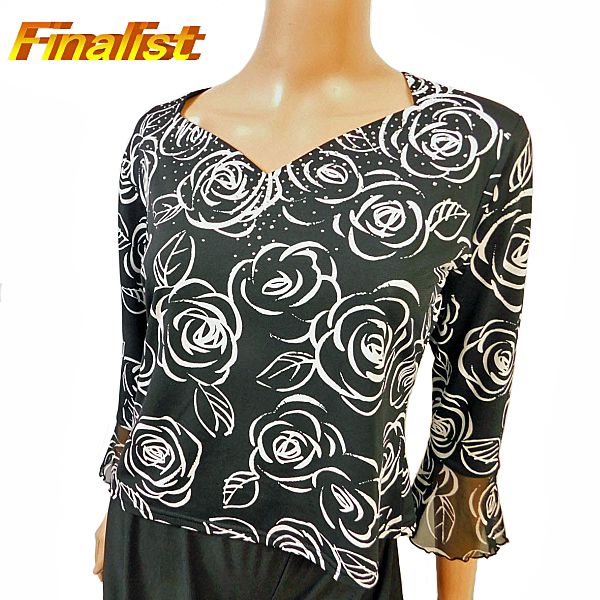 中古 社交ダンス トップス 黒に白のバラの花 サイズL