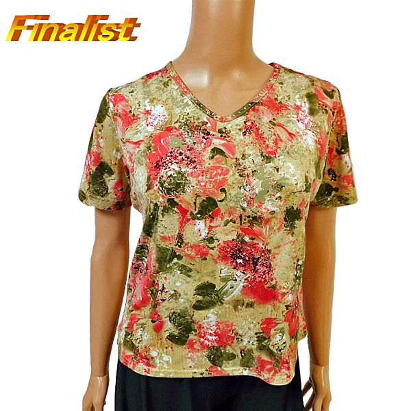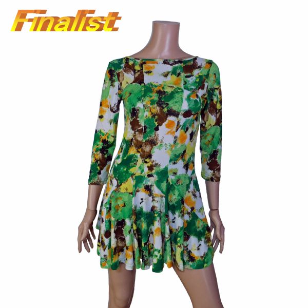 中古 社交ダンストップス グリーン柄チュニック サイズF