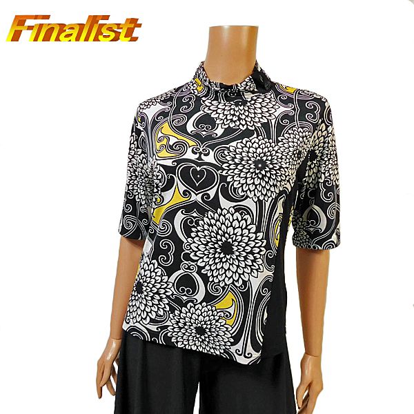 中古 社交ダンス トップス ハイネック黒に白の花 サイズF