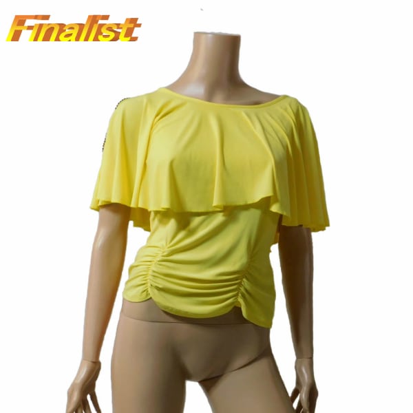 中古 社交ダンストップス 黄色胸フリル サイズF