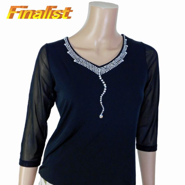 中古 社交ダンストップス 黒 首背中に石 サイズL