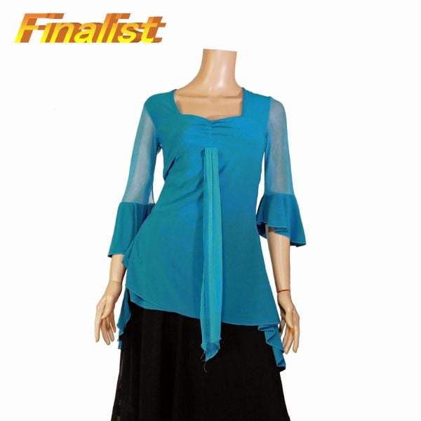 中古社交ダンス トップス ブルー胸フリル サイズF