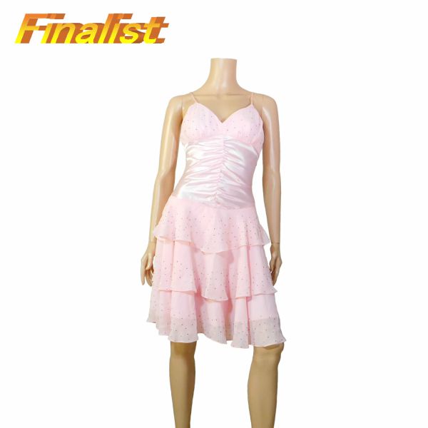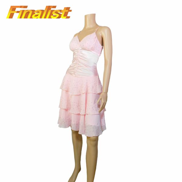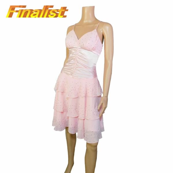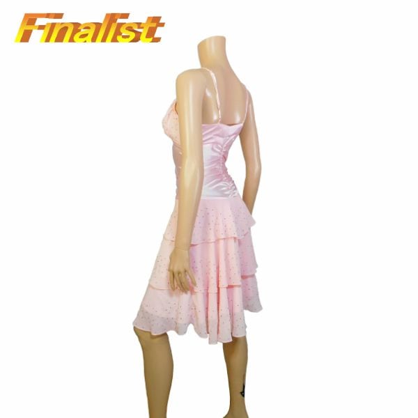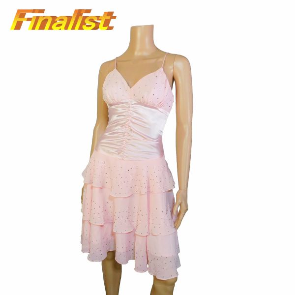 中古 社交ダンストップス チュニック半袖 黒ブルーと白の玉 サイズL