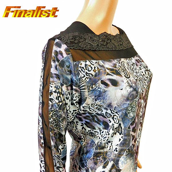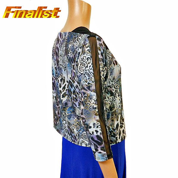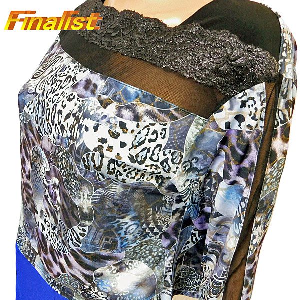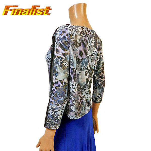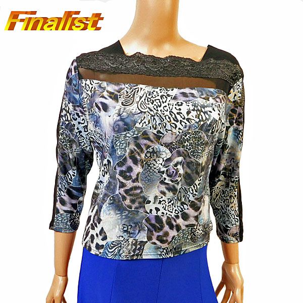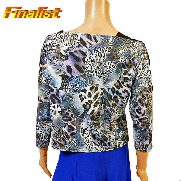 中古 社交ダンス トップス ブルー アニマル花柄 サイズLL