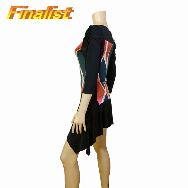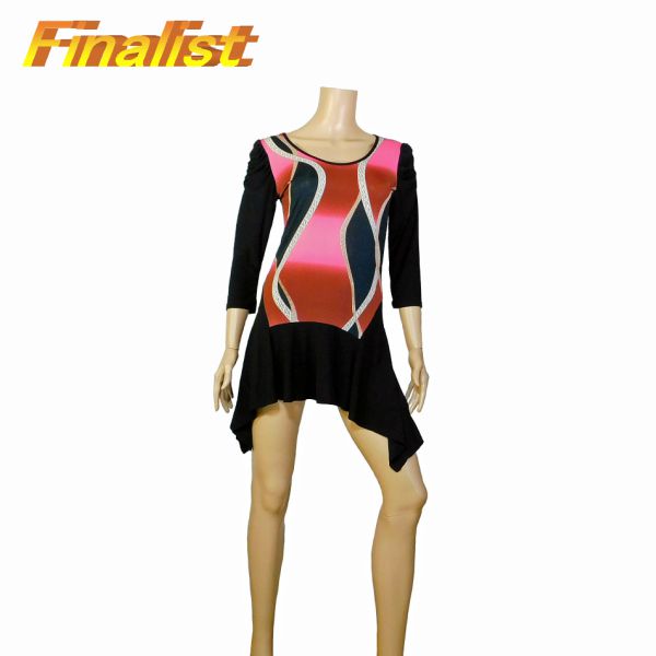 中古 社交ダンストップス 黒ピンクチュニック サイズF