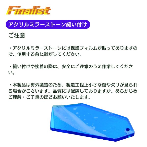 ガラスストーンのように割れる心配が少なく、軽量で縫い付けやすいのが特長。